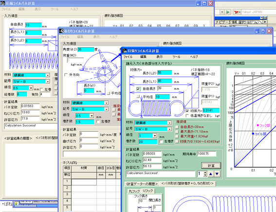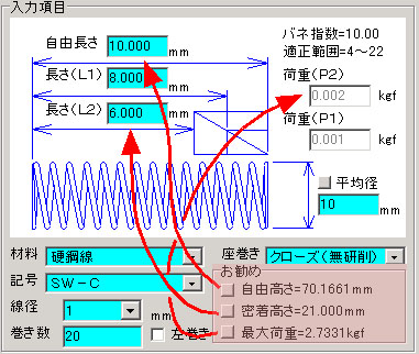 - ばねの要目を入力するだけで簡単に計算できます。