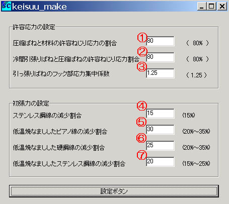 @材料の許容応力に対して、圧縮ばねが採用する許容応力の比を%で設定する。