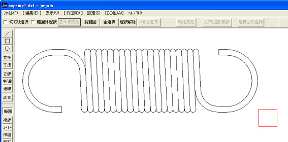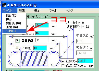 圧縮コイルバネ、引張りコイルバネについては、整数巻きのバネ形状表示および、dxf出力も行います。