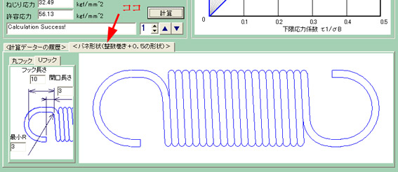 ・計算を実施後、<バネ形状>タグを選択するとバネ形状を表示することができる。