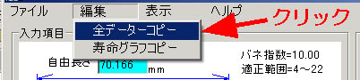 ・編集をプルダウンして、全データーコピーをクリックすると、表の数値をクリップボードにコピーできる